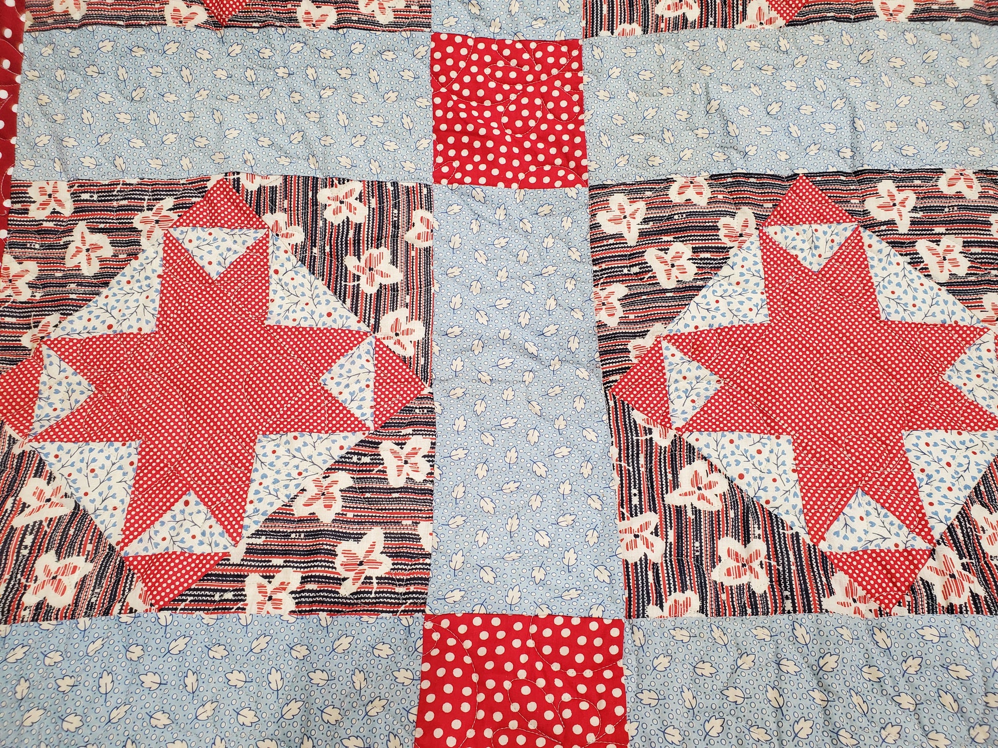 Revival Quilt- "1940s Farmhouse Stars" 88"x 88"