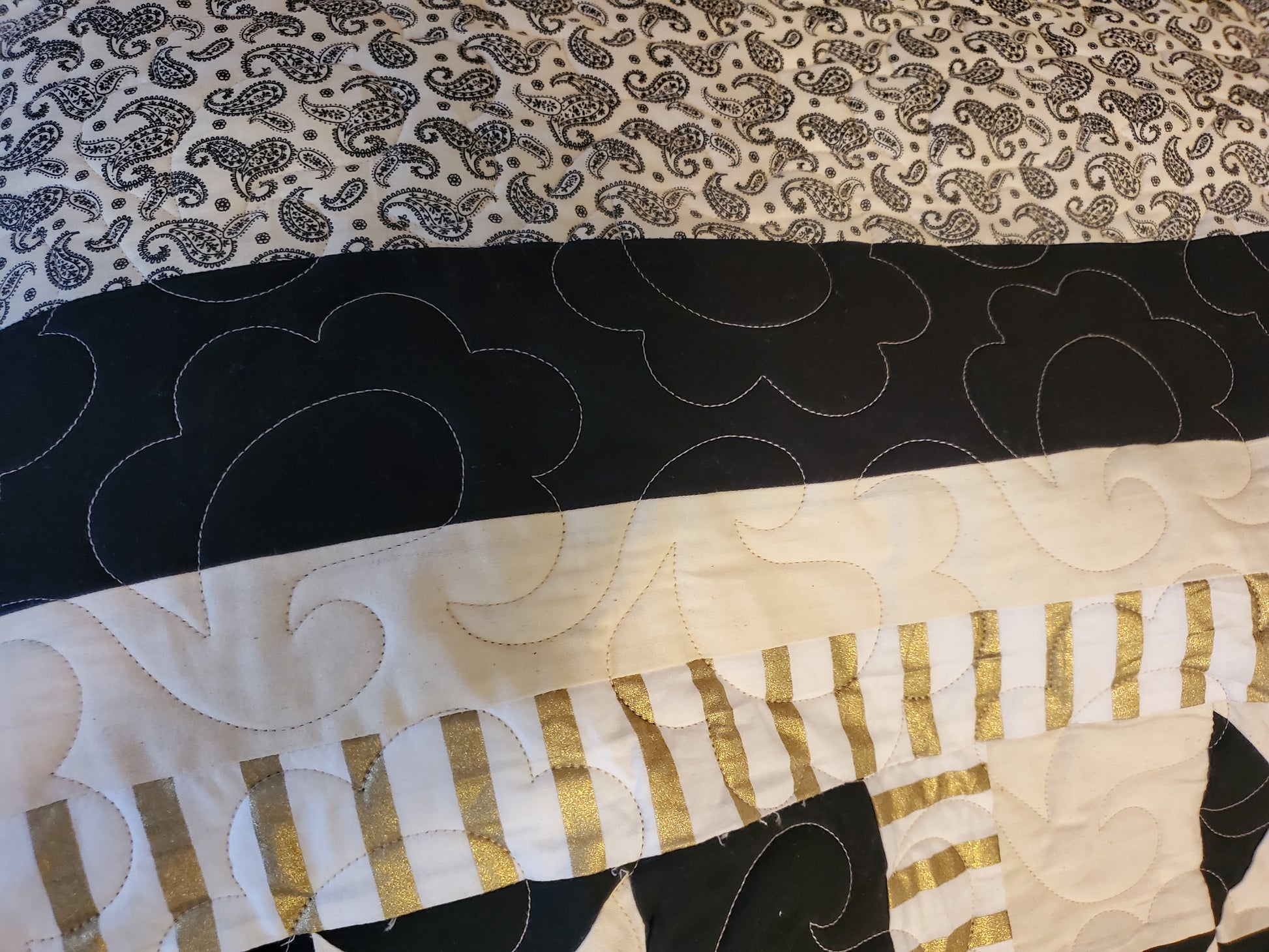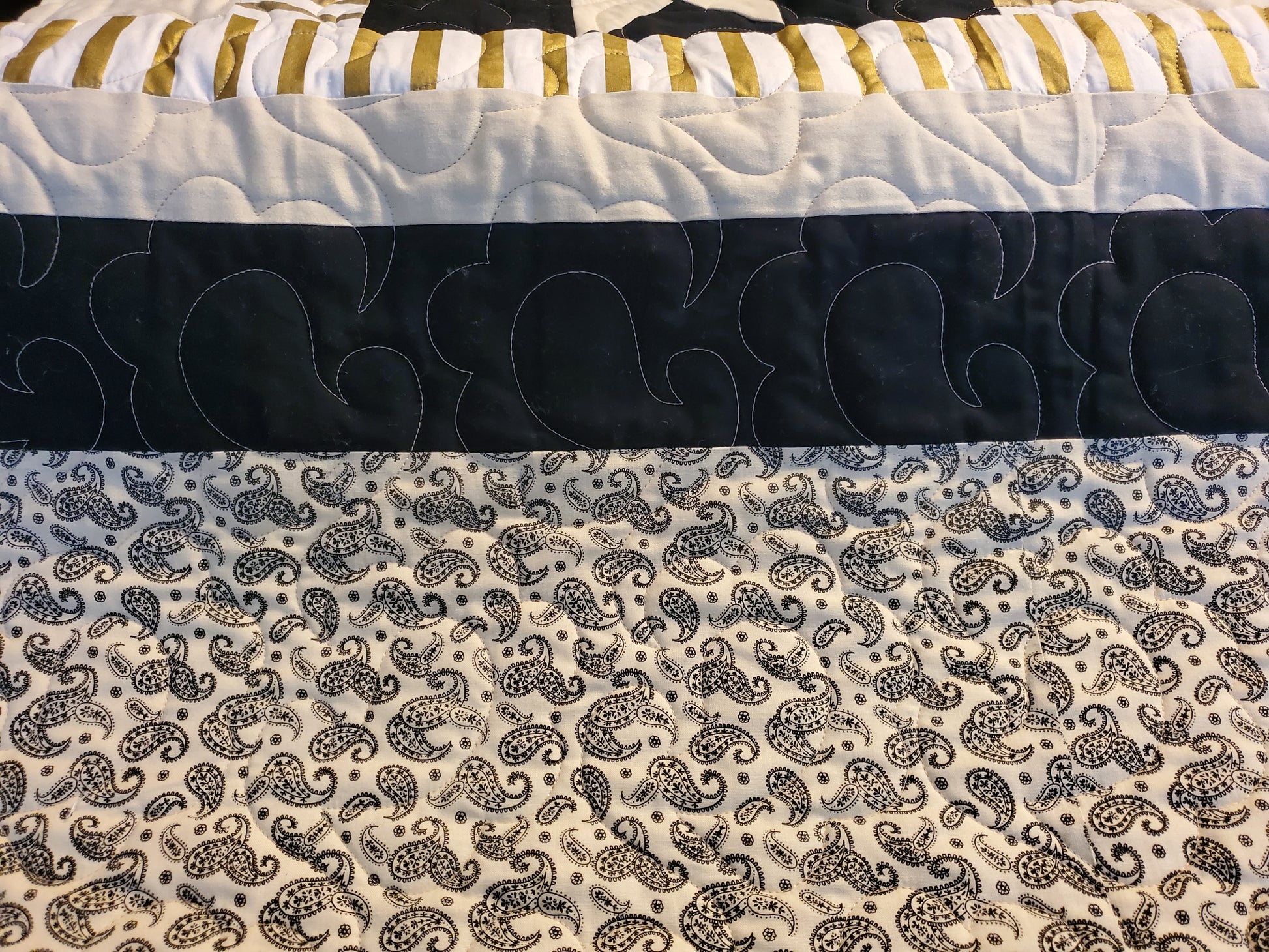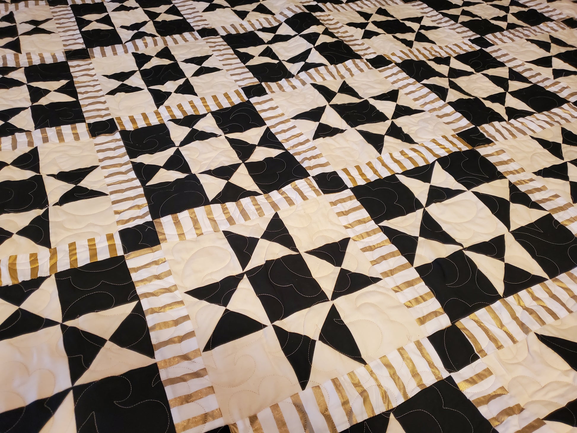 Black, White & Gold Ohio Star Quilt – King Size (103" x 103")