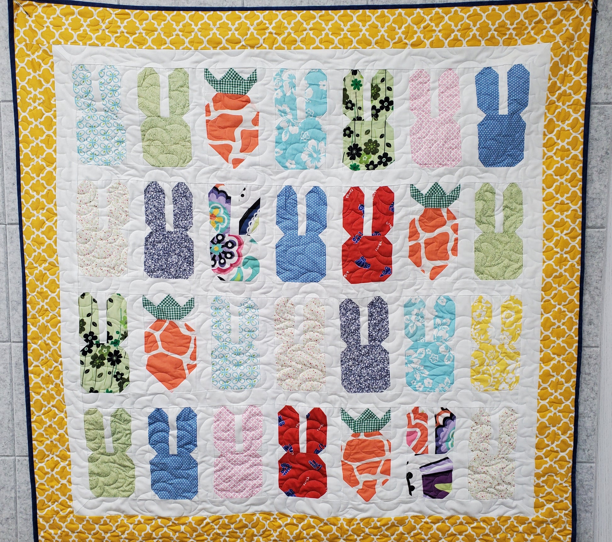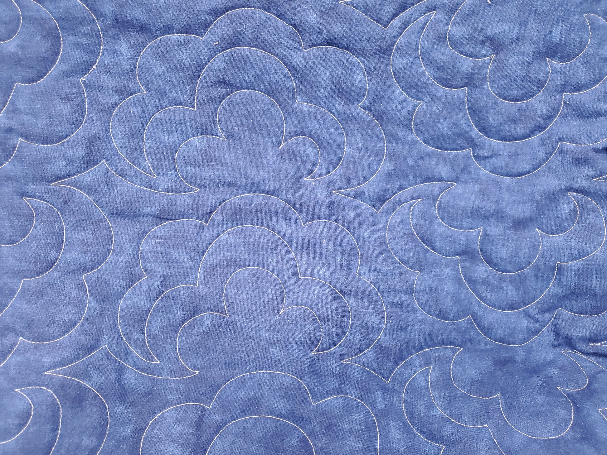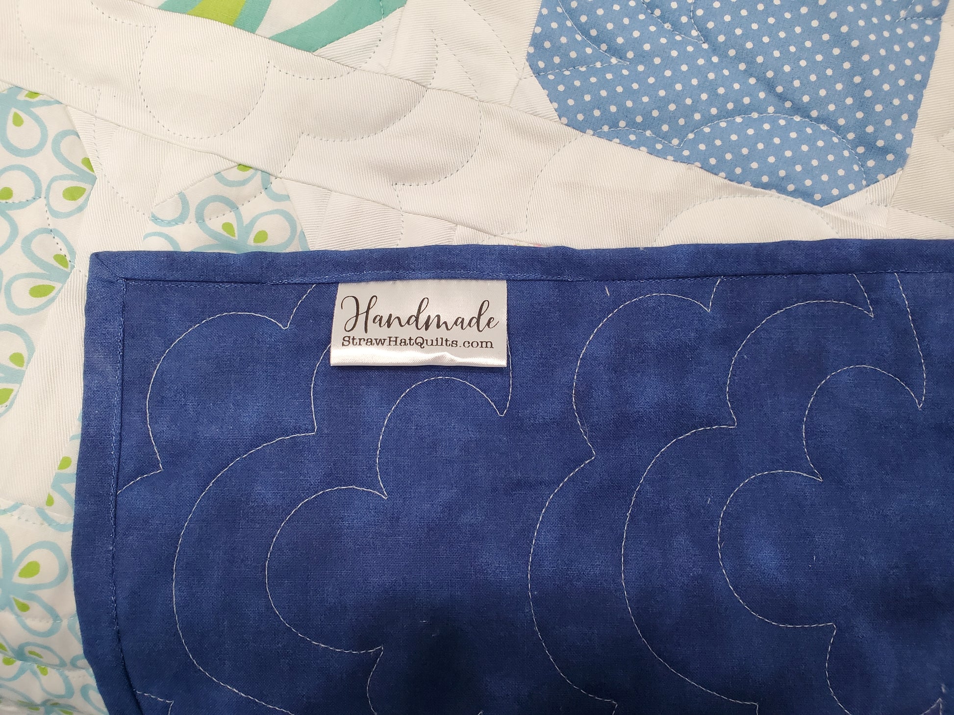 - Quilting: End-to-end pale blue “cotton tale” stitching for a fun finish